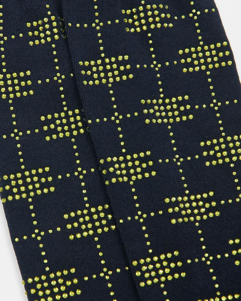 Chaussettes en coton mélangé / motif à carreaux / ornements en strass scintillants / nœuds en strass pour une touche féminine / bords côtelés confortables / coloris navy et vert