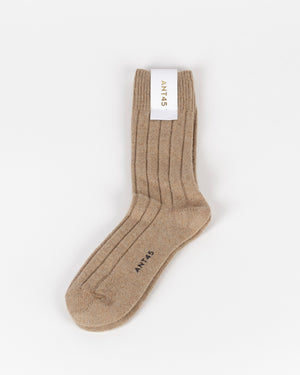 Chaussettes ANT45 / Maille côtelée / Coloris beige uni / Logo ANT45 sur la semelle