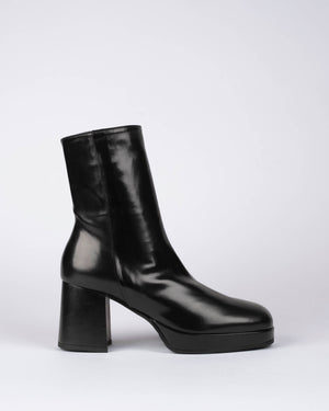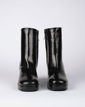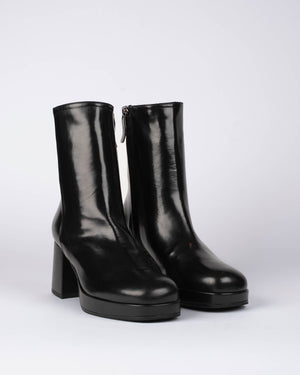 Bottes en cuir noir / Élégance classique / Confort moderne / Talon épais stable / Zip latéral Service client au 04 78 61 10 07 ou par mail à contact@popandshoes.com.