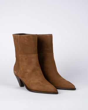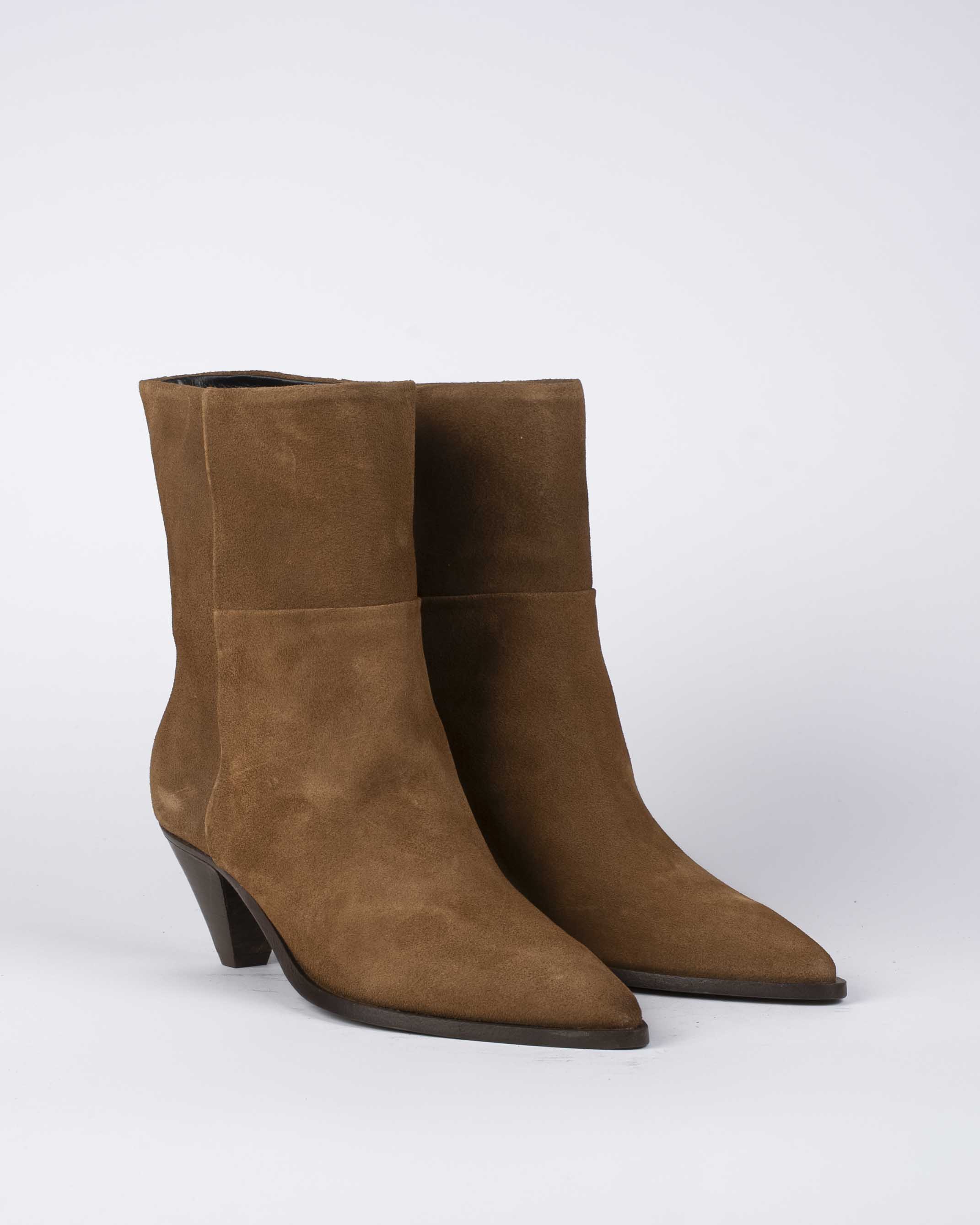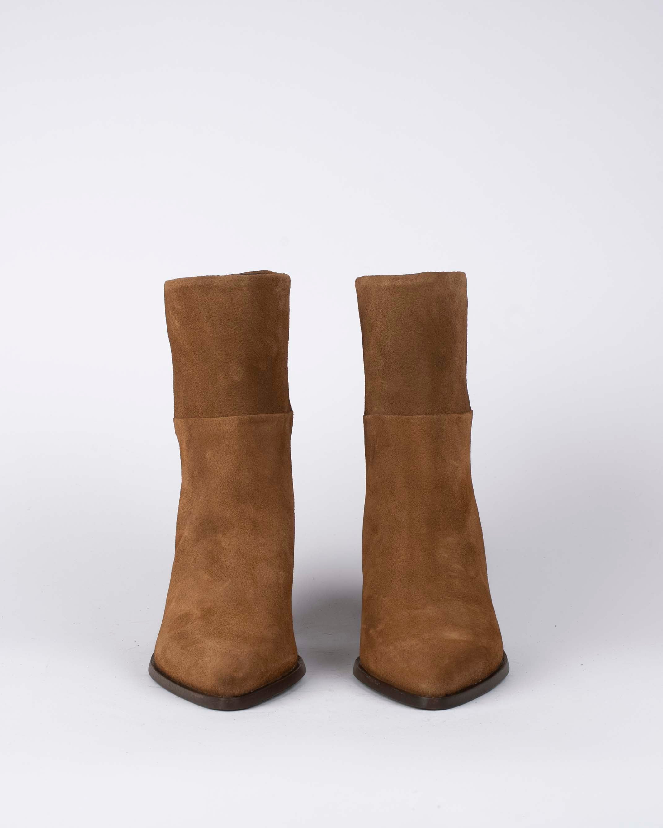Bottes femme Ducanero / Cuir suédé camel / Style western chic / Bout pointu / Petit talon confortable