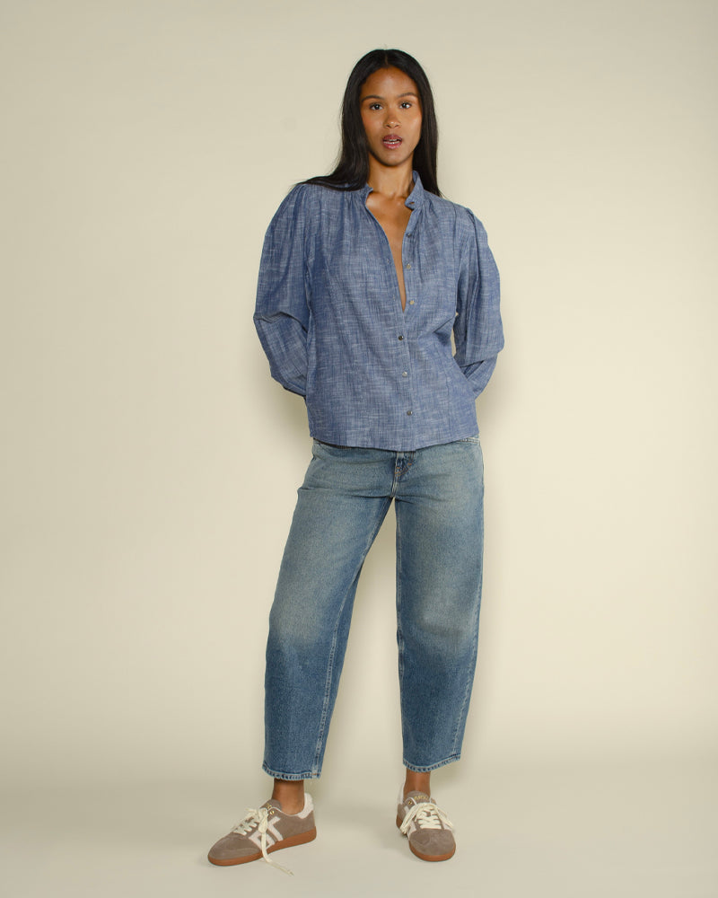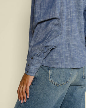 Blouse en coton / Manches longues / manches bouffantes / Chambray