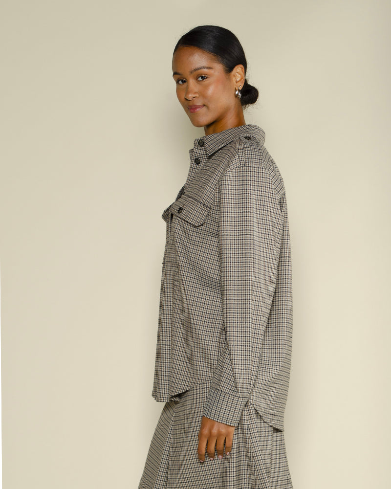 Chemise Petite Mendigote à carreaux / Coupe droite décontractée / Col chemise classique / Fermeture boutonnée / Poches poitrine à rabat / Tissu léger et confortable