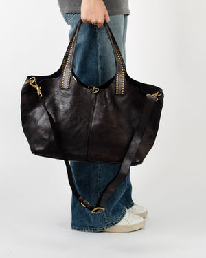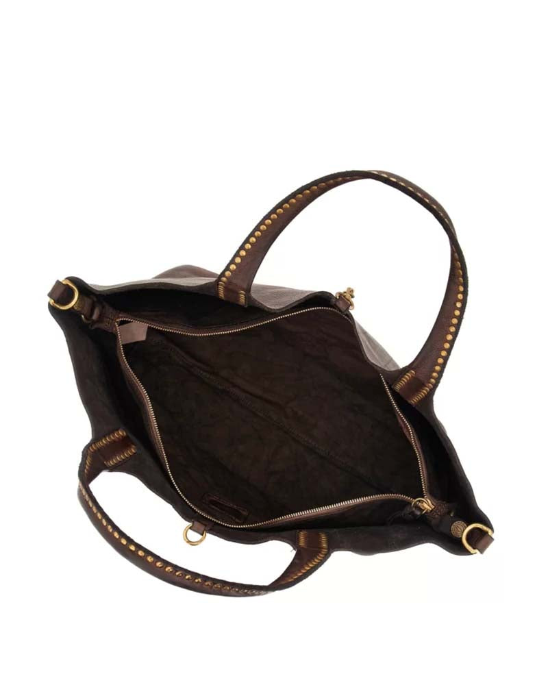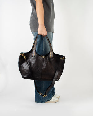 Un sac style cabas de la marque Campomaggi. On adore ce must-have pour toute la saison et plus grâce à la super qualité de la marque italienne ! Les hanses sont grandes avec des rivets couleur or. Grand et pratique il vous suivra partout.