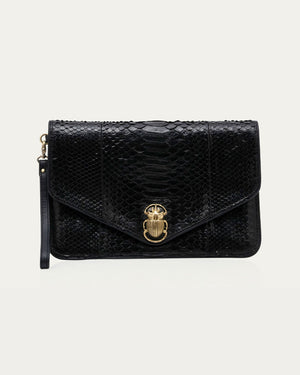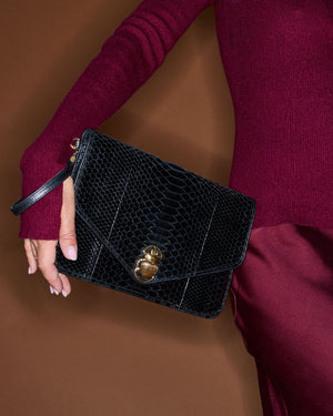 Pochette souple / Grand rabat / Fermoir bijou / Dragonne cuir / Format compact