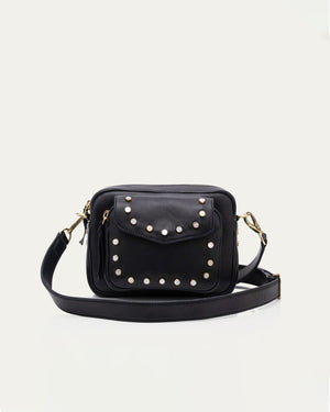 Le nouveau baby Charly en cuir peut se porter croisé ou épaule grâce à sa bandoulière modulable. Orné de clous nacrés, il est organisé en un seul compartiment avec une poche à l'avant ainsi qu'une poche interne. Mini et pratique, notre Baby Charly pourra vous accompagner de jour comme de nuit au fil des saisons !