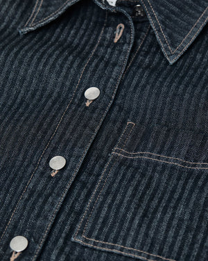 Coupe droite / Longueur classique / Poche poitrine avec surpiqûre angulaire / Boutons métalliques / Fils contrastés / Fabriquée en Italie