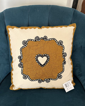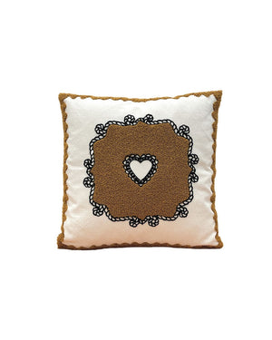 Coussin en toile épaisse / coeur brodées / dos en toile uni naturelle / touche artistique