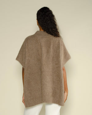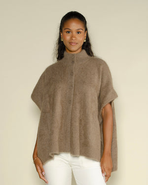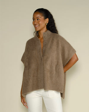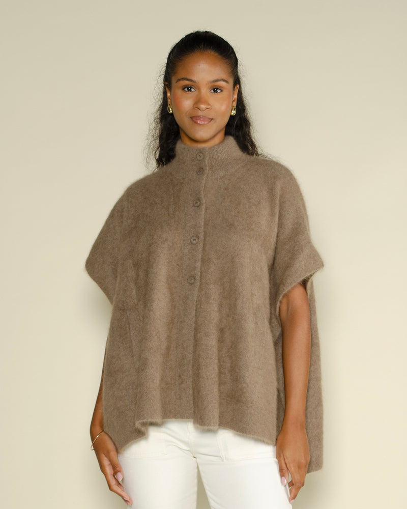 cape tout doux / manches courtes / poches à l'avant / boutonnière au niveau du col
