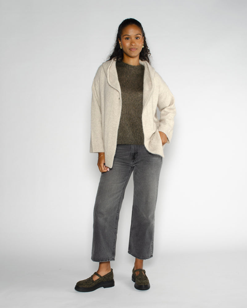 Gilet à capuche / couleur ivoire / oversize / maille tendance