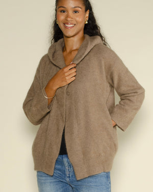 Gilet capuche / tout doux / boutons à l'avant / manches trois quarts