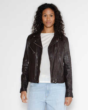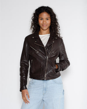 Composition : Cuir d'agneau, fin et souple, Col Perfecto, Fermeture asymétrique zippée, Bas de manches zippées, 3 poches extérieures zippées, 1 poche intérieure cachée taille smartphone, Doublure coton et manche polyester