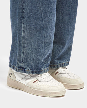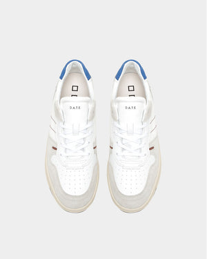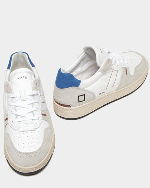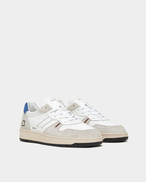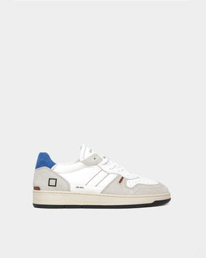 Baskets basses en cuir blanc avec des empiècements en daim gris clair et détail bleu. Un paire de baskets pour homme facile à assortir au quotidien. Coup de cœur pour cette paire de baskets décontracté !