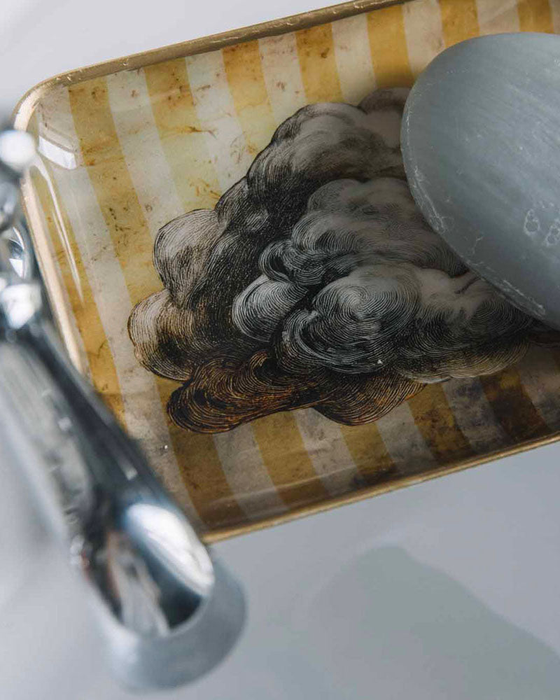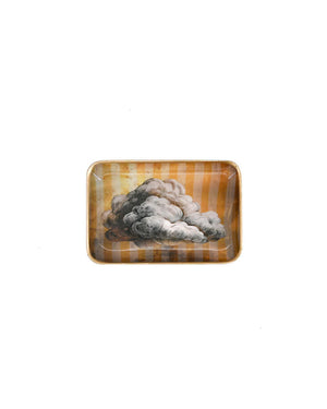 Petit plateau rectangulaire / illustration de nuages sur fond rayé doré et ambré / design poétique