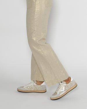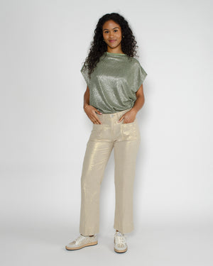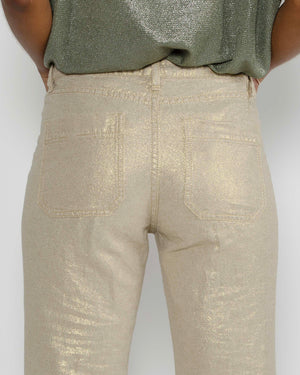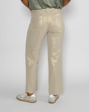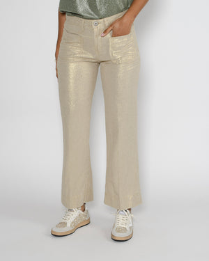 On adore ce pantalon en lin doré de la marque Denim Studio pour sa matière légère et sa teinte lumineuse. Une pièce élégante et confortable, parfaite pour un look chic et estival !