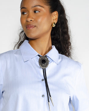Inspiration western / Ficelle en cuir noir / Pierre noire centrale / Système coulissant pour ajuster la taille / Style audacieux et bohème / Accessoire original pour twister un look.