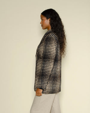 Motif pied-de-poule noir & blanc / Coupe courte & moderne / Col chemise structuré / Style élégant avec une touche rétro / Parfait pour un look chic et graphique signé DIEGA
