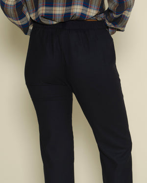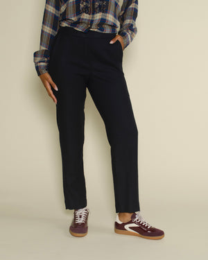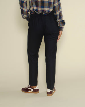 Coupe droite intemporelle / Taille élastique pour un confort optimal / Coloris navy facile à porter / Style casual-chic polyvalent / Parfait du bureau au week-end