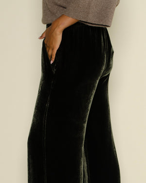 Pantalon Portorico Diega / Velours kaki profond / Coupe droite / Silhouette épurée / Confort et élégance / Facile à associer ou en total look