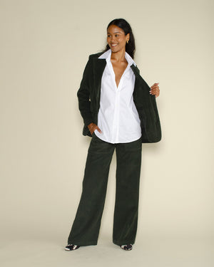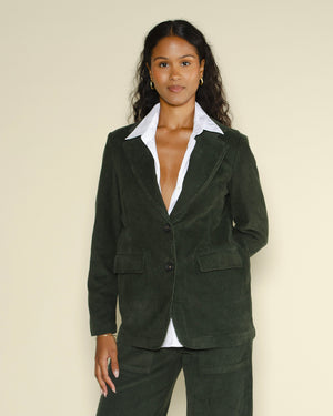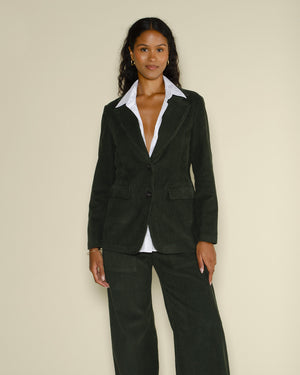 Veste Verko de Diega / velours côtelé / doux / subtilement texturé / élégante / coupe tailleur classique / structure la silhouette / tombé fluide / confortable