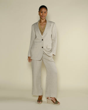 Une veste Vouziamo de couleur beige à rayures de la marque Diega. On craque pour cette veste sur une chemise ou même sur un t-shirt pour contraster. Une veste must-have ! Retrouvez le pantalon Pantero assorti pour full look Diega.