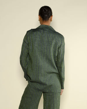 Une veste Vouzieto de couleur vert rayée et de la marque Diega. Une jolie veste de blazer fluide et légère. Une coupe droite comme on les aime, cette veste verte Vouzieto est parfaite pour vos looks d'été! On adore porter cette veste de blazer Vouzieto avec ce pantalon Pomito assorti.