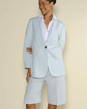 Une veste tailleur Vouzieto de couleur ciel et de la marque Diega. Une jolie veste de blazer fluide et légère. Une coupe droite comme on les aime, cette veste ciel Vouzieto est parfaite pour vos looks d'été! On adore porter cette veste de blazer avec le pantalon Perillo assorti.