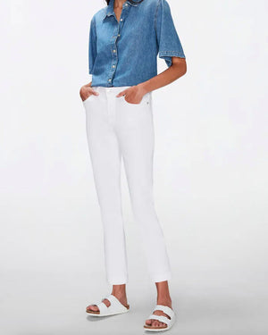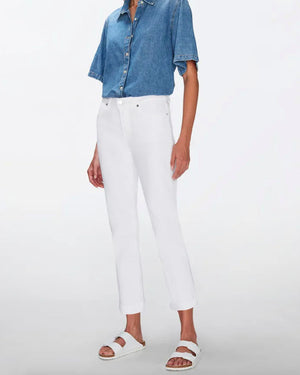 Un jean blanc à la coupe boyfriend très chic. De manière générale, le jean blanc est un intemporel qui ira avec tout ce que vous avez dans votre dressing ! A vous de composer vos looks pour parfaire votre style !
