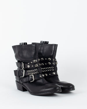 Une paire de Santiags noire en cuir Elena Iachi très facile à associer dans une tenue. On craque pour ses lanières cloutées qui ajoutent à la paire un style rock bohème !