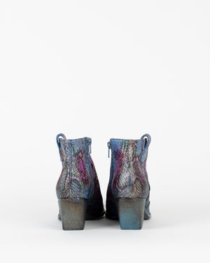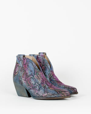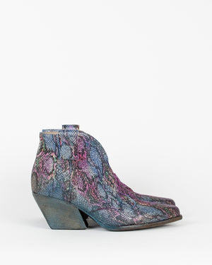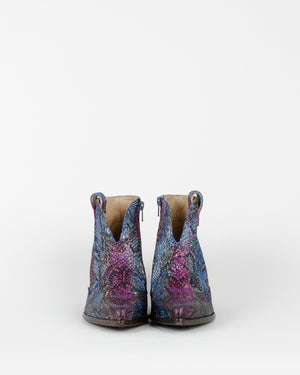 Des tiags colorées avec un effet python sirène de la marque Elena Iachi. Avec une coupe au-dessus de la cheville, ces santiags sauront pimenter vos tenues avec de la couleur et du brillant