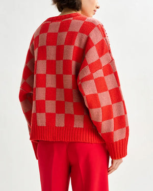 Pull en laine mélangée / Coupe boxy décontractée / Emmanchures basses / Bords côtelés / Motif jacquard échiquier et fleurs intarsia