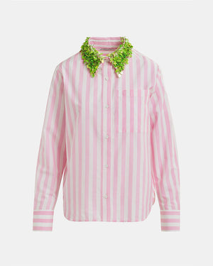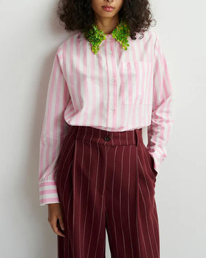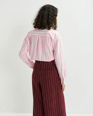 Une chemise rose à rayures de chez Essentiel Antwerp parfait pour cette saison d'été ! Son col orné de paillettes rend cette pièce mode et sophistiqué qu'on adore ! Avec un short en jean bleu ou un pantalon fluide, vous serez au top de la tendance.