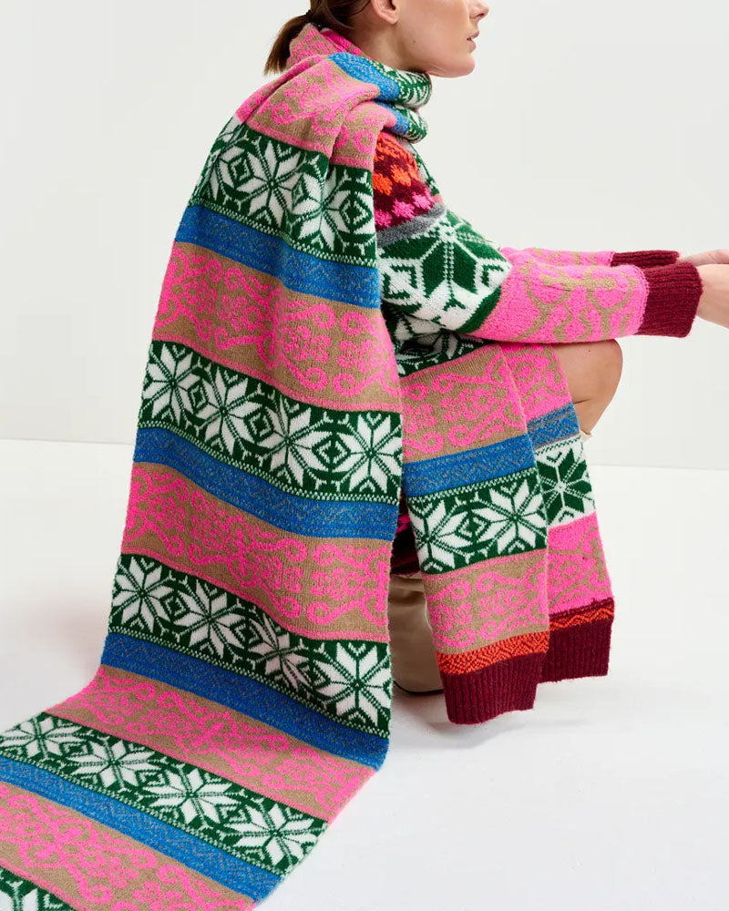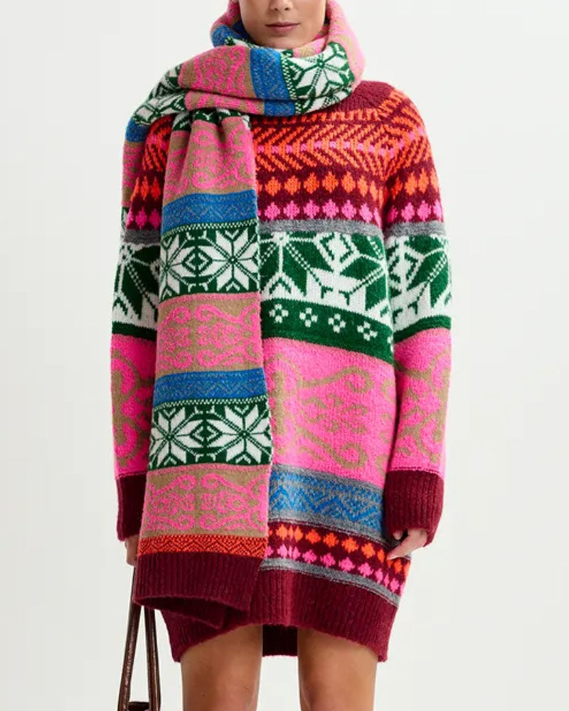Écharpe en maille jacquard / Motif multicolore audacieux / Dimensions 230 x 38,5 cm / Bords côtelés