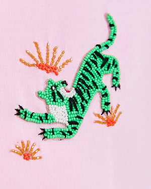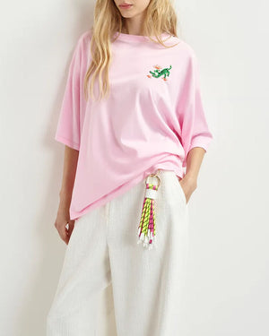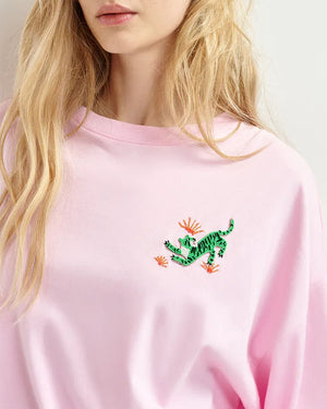 Un t-shirt rose de chez Essentiel Antwerp parfait pour cette saison d'été ! Avec un short en jean bleu ou un pantalon fluide, vous serez au top de la tendance. On adore sa broderie panthère sur la poitrine.