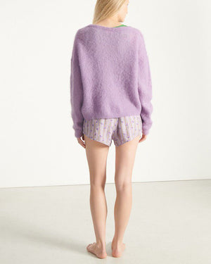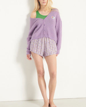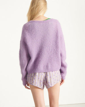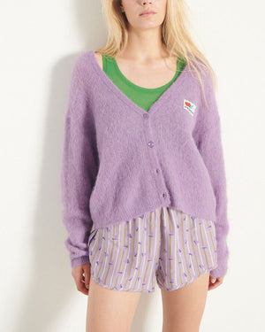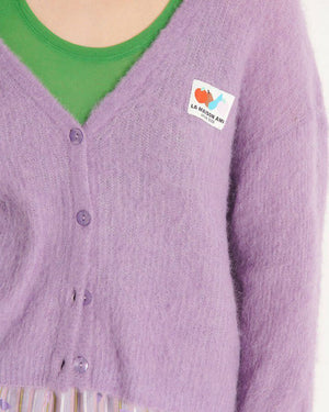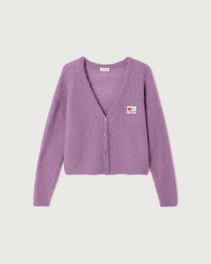 Gilet Nenybay femme / Manches longues / Col V / Fermeture boutonnée / Patch logo poitrine / Maille aérienne aspect fluffy / Matière fine et douce