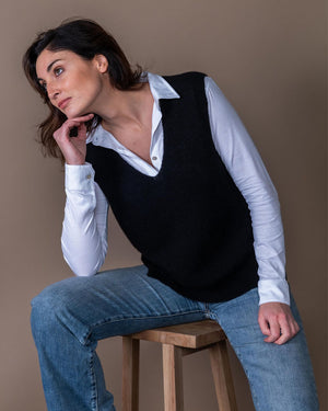 Pull pour femme de la marque Anonym. Ce pull si doux au toucher est fait en laine d'alpaga brossée. On adore son côté sans manches qui le rend indispensable pour la saison. Faites comme nous et craquez pour ce pull Anonym pour femme !