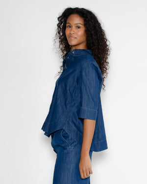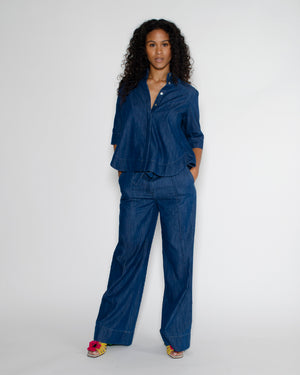 Une chemise pour femme en denim et de la marque Hana San. On adore cette chemise en denim top tendance cette saison ! Confortable et ample, cette chemise en coton de style jean est parfaite. On adore porter cette chemise avec ce pantalon Hana San en denim assorti.