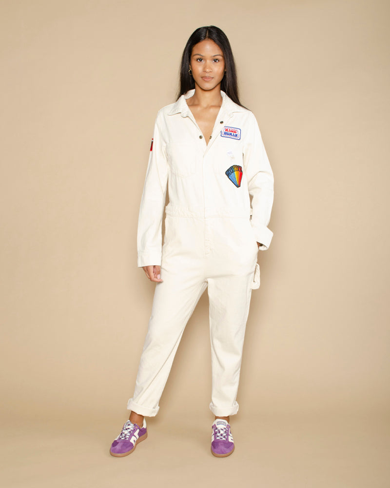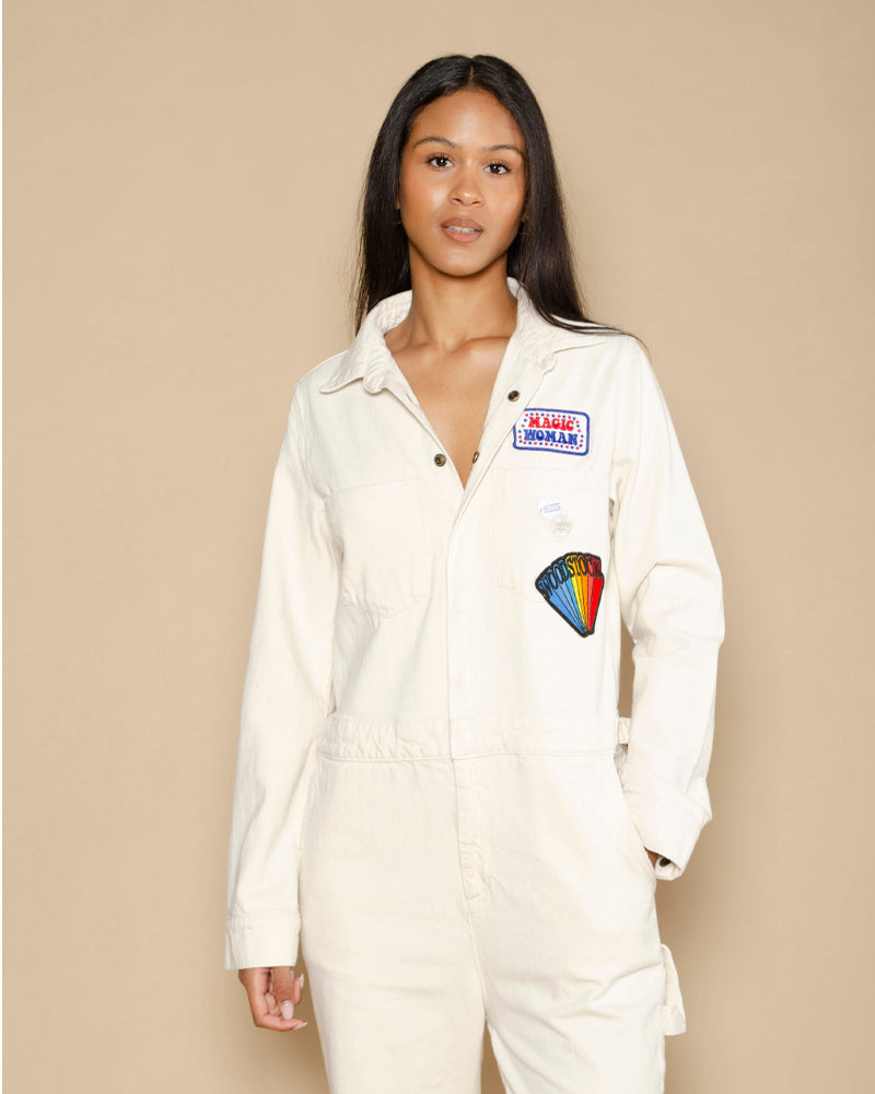 Une combinaison Custom de couleur écru et de la marque Newtone. Une combinaison pantalon à manches longues top tendance. On est fan des broderies de cette combinaison Newtone !