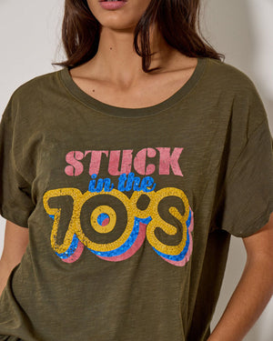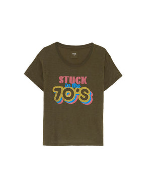 Tee-shirt imprimé pour femme de la marque Five. Ce tee-shirt "Stock in the 70's" est un intemporel pour un look rock et casual. Son style nous renvoie aux années 70, pleines de couleurs et de peps ! On adore ce basique, facile à porter avec tout.