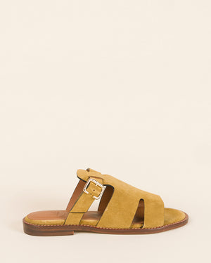 Multi brides / 3 Brides épaisses / Boucle dorée à la cheville / Confortable / Bout ouvert / Bordures kaki / Détails coutures