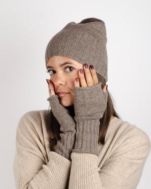 Touche de douceur / élégance / mitaines taupe / confort et style / accessoire chic / look casual ou sophistiqué