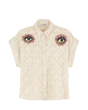 La chemise Edith incarne une esthétique bohème et sophistiquée, avec des broderies florales et des sequins délicats qui ajoutent une touche unique à cette pièce. Sa coupe oversize et ses manches amples apportent confort et fluidité, combinés aux perles violettes, noires et vertes, créent une aura élégante. Retrouvez ici le short assorti.