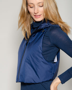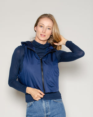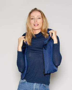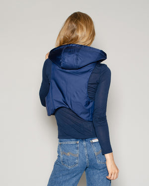 Un confort assuré avec cette doudoune à capuche sans manches bleu marine. On la portera tout l'hiver sous notre manteau pour plus de chaleur !