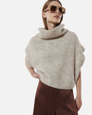 C'est un pull col roulé sans manches signé Karma Koma. Le col est volontairement lourd et imposant pour imposer un style mode et assumé. On est fan de ce pull qui peut aussi se porter en superposition !