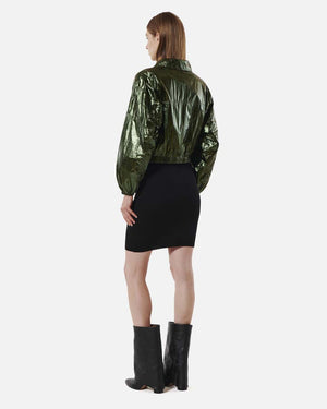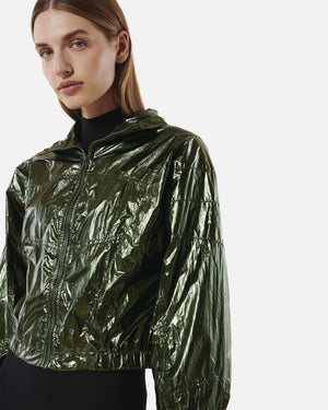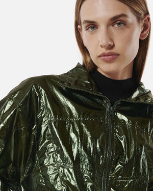 Une veste pour femme brillante de la marque Karma Koma. Cette veste en nylon de couleur vert kaki est fine, idéale pour la demi-saison. Coup de coeur pour cette veste à la coupe courte et féminine, le fini vernis de la veste est très tendance !