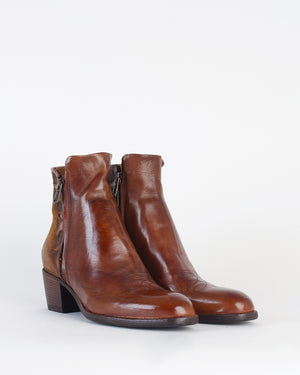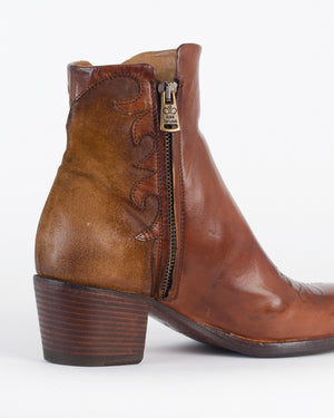 Une paire de tiags cognac en cuir du créateur King Tartufoli. Vive le cuir italien et sa qualité ! Vous pourrez porter cette paire avec une paire de collants et une jupe ou même un jeans mom, pour un look rock et glamour.
