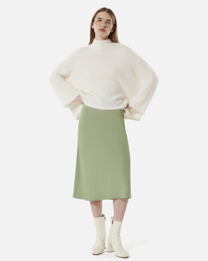 C'est le pull le plus chaud de la saison signé Karma Koma. Sa coupe est ample et oversize avec des manches 3/4. La maille est fluffy et surmonté d'un col cheminée. Facile à assortir sur une jupe longue.
