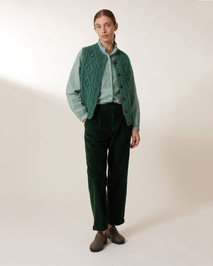 Ce pantalon pour femme en velours côtelé rentre parfaitement dans la tendance chasse et pêche de cette saison automne-hiver 2025.