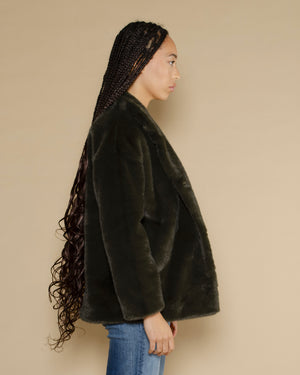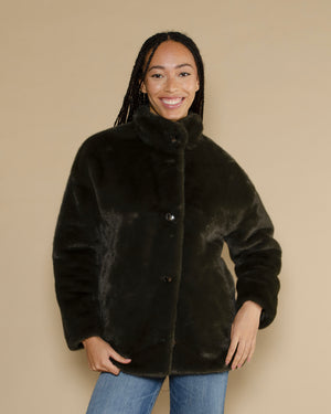 Un blouson en fausse fourrure iconique signé Hartford. La coupe est ample et agréable à porter et la matière est très douce au toucher. On retrouve deux poches à l'avant et une boutonnière.