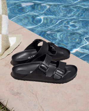 Inspiré de la sandale classique Arizona, ce modèle de sandales est en EVA. La matière synthétique de grande qualité, sans odeurs et sans substances nocives. Elle est très légère, élastique, article étanche, agréable pour la peau et offre la sensation de confort ultime de BIRKENSTOCK. Parfaite pour cet été à la sortie de l'eau, vous n'allez plus les quitter. Intemporel avec sa couleur noir, c'est la sandale qu'il vous faut cet été !