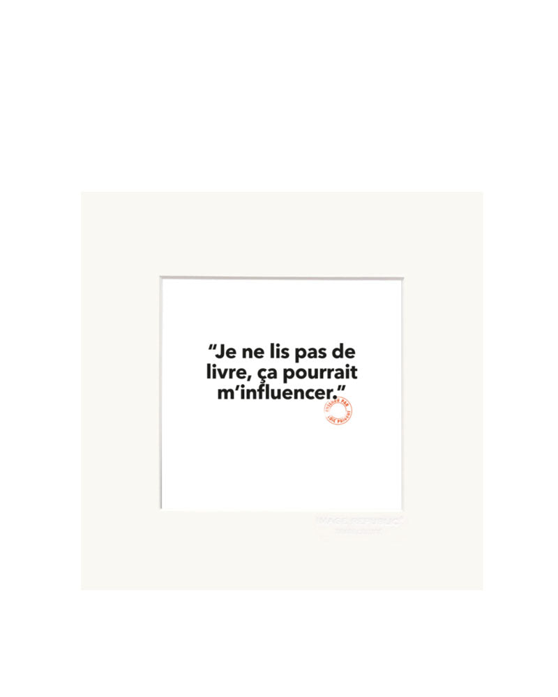Une affiche format carré à la phrase amusante et décalée: "Je ne lis pas de livres, ça pourrait m'influencer."